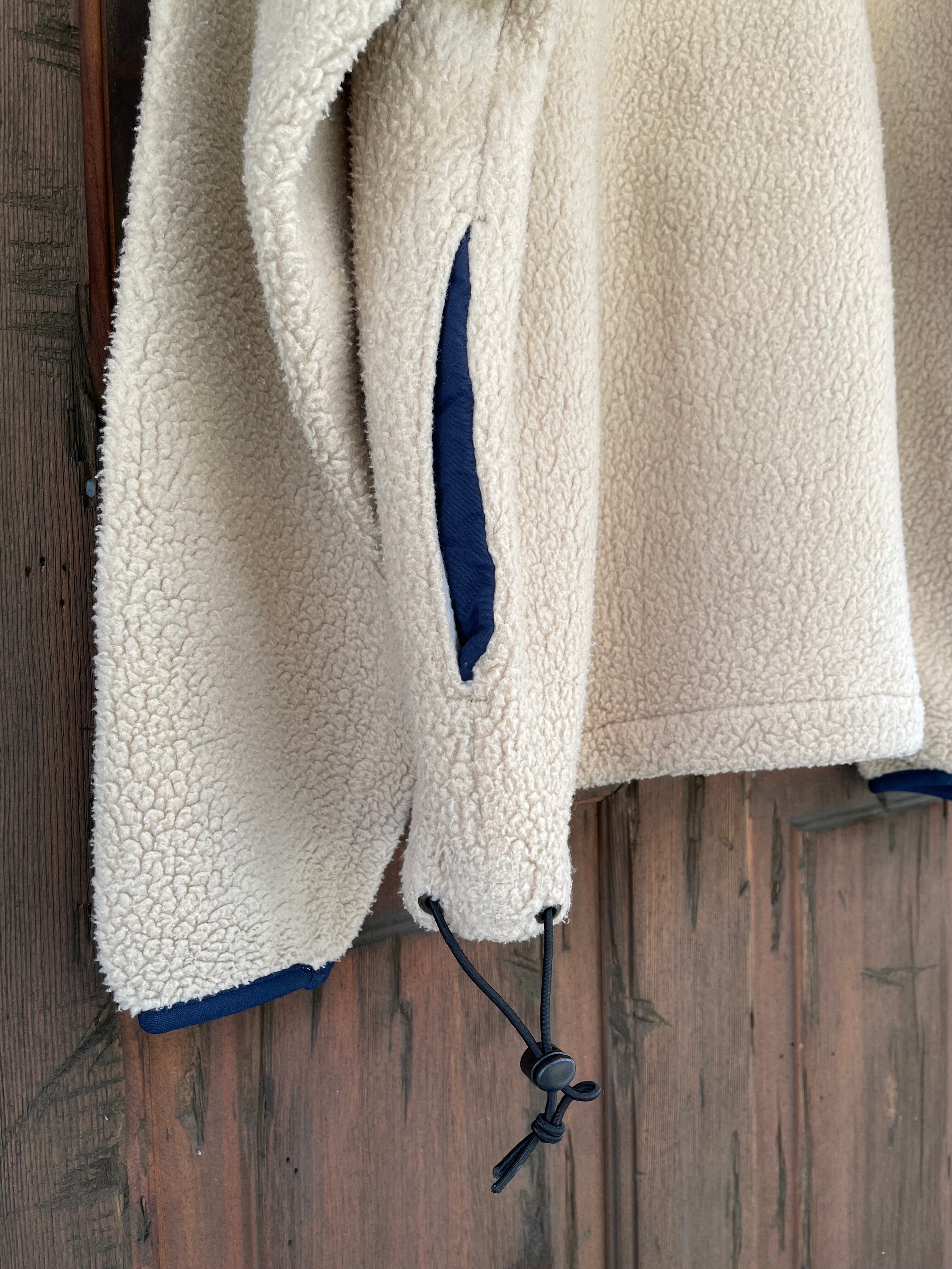 ポリエステル100%の厚手なボアフリース(シェパフリース)が使用されています。