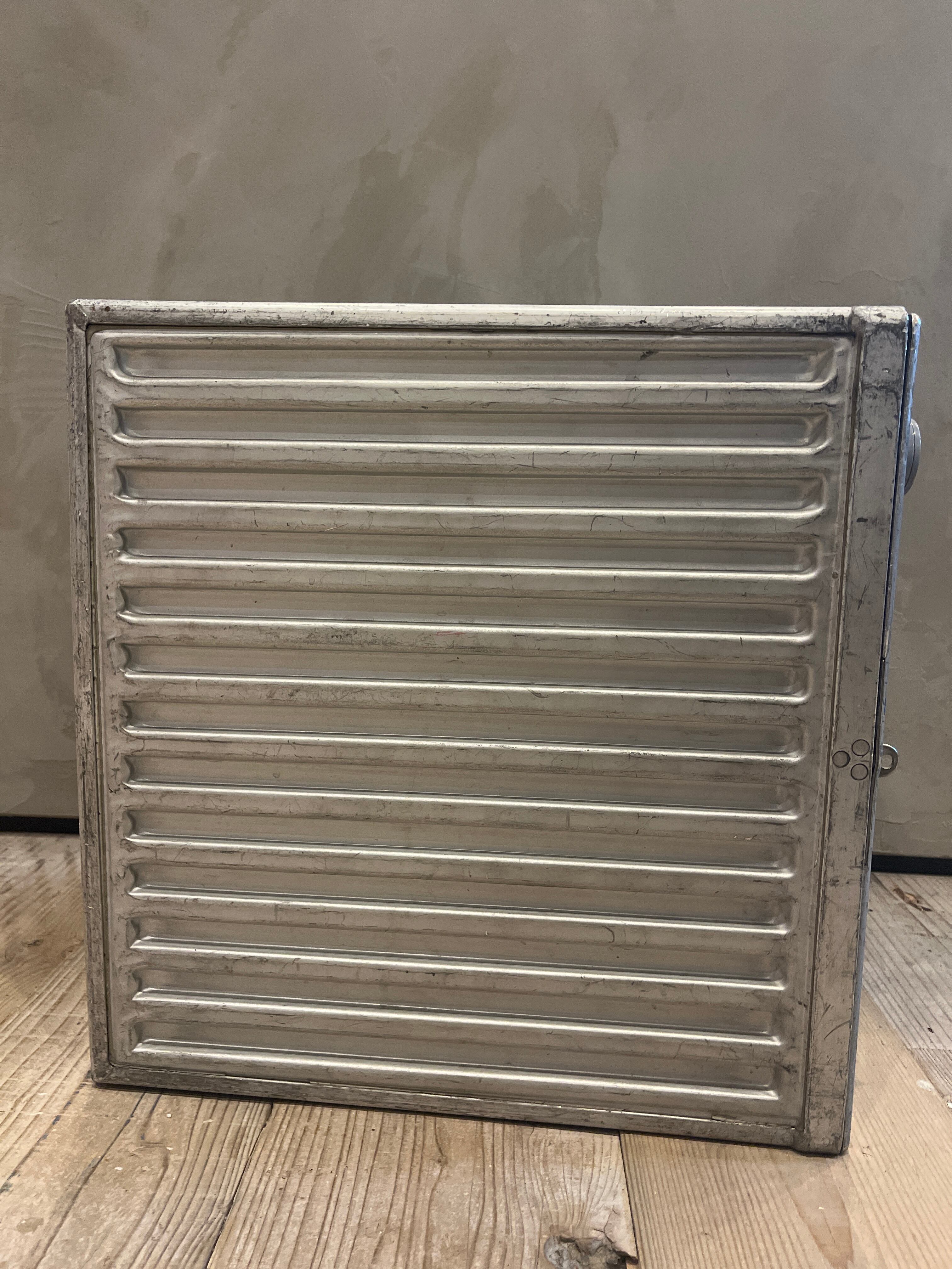 本来、飛行機で使用されていたFood container。新品にはないアルミの色合いとルックスがキャンプや家の見せる収納としてオススメの逸品です。