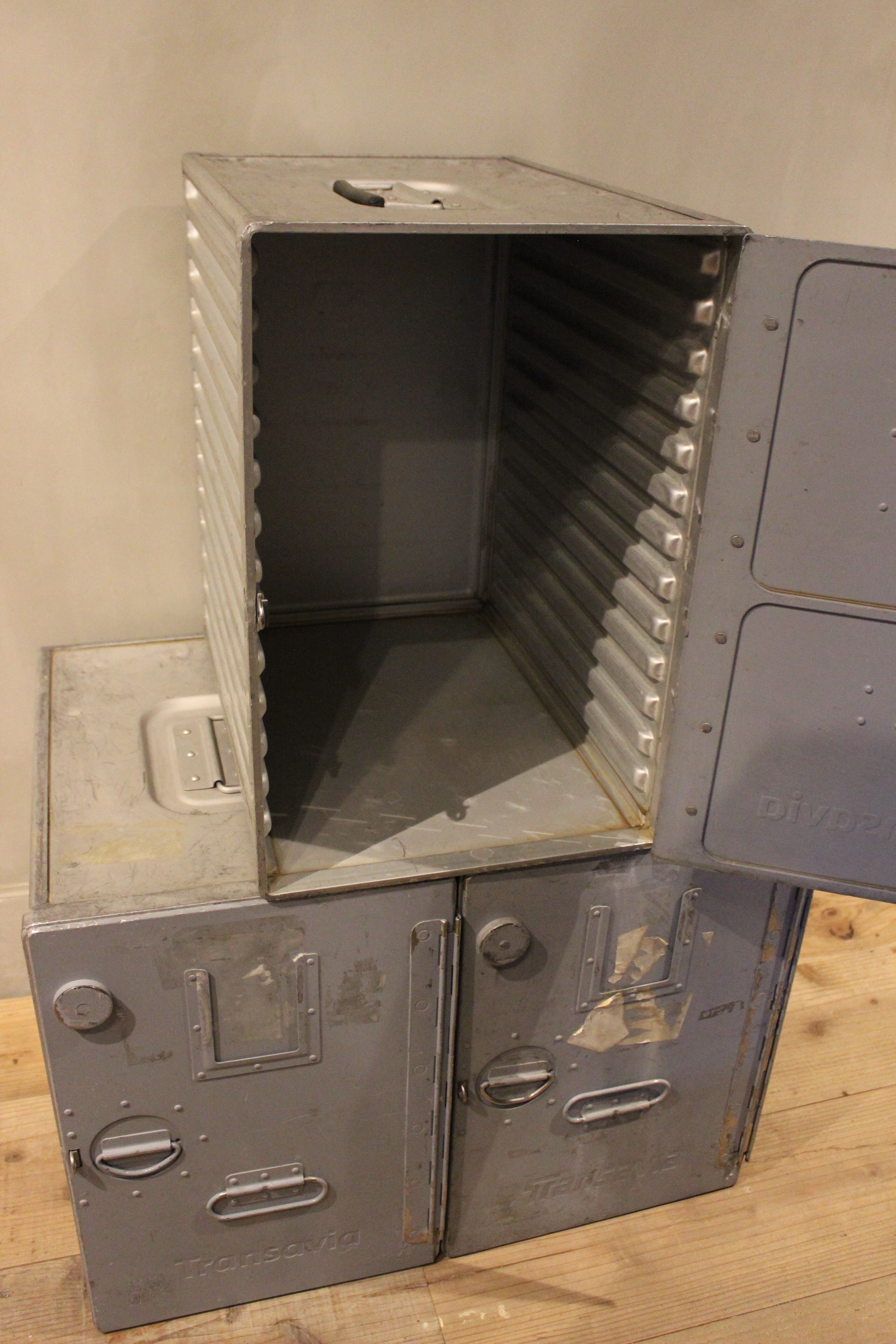 航空会社"TRANSAVIA"の刻印が施されているgalley box。
